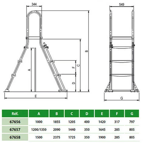 - Accessoire piscine : Ăchelle en inox pour piscines hors-sol et semi-enterrĂ©es – 1 000 mm