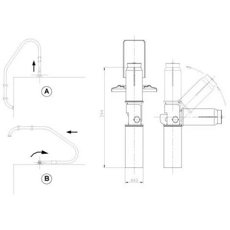 Ancrage articulé en tube acier inox poli IISI-304 Ø43mm. Monté sur platine, axe avec écrou auto-bloquant. – – – –