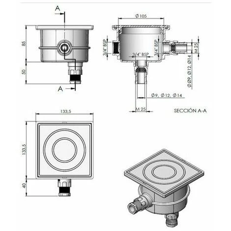Boîte de connexion en ABS. Dispose de 3 entrées ou sorties en 3/4?. Filetage 3/4? et M-25 – Boîte de connexion pour piscine – Qualité de fabrication professionnelle en ABS – Idéal pour la rénovation ou la construction de piscine –