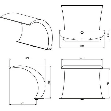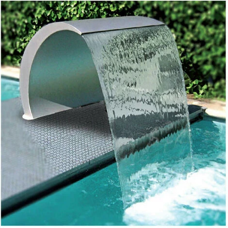 Cascade en inox Cisne 450 pour piscines privées et publiques. Acier inoxydable satiné AISI-316, fixation par platine à vis. Débit recommandé 21.5 m³/h – – – –