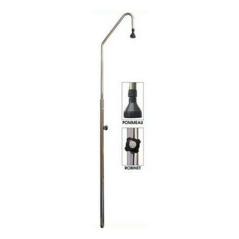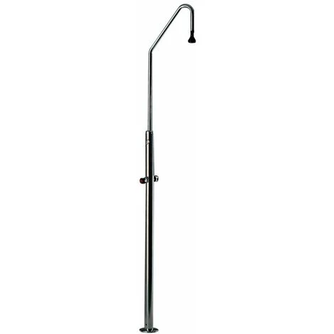 Douche en acier inox AISI 304 avec pommeau et 1 robinet. – Douche en acier inox AISI 304 avec pommeau et 1 robinet – Tube Ø 43 cm, ancrage incorporé – Poids 5.6 kg – Hauteur sous pommeau 2.00 m