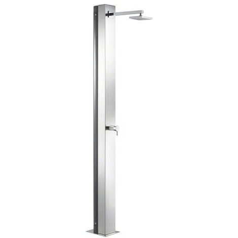 Douches en inox AISI 304 poli. Pommeau en ABS chromé traité anti-calcaire. Fixation au sol aisée par platine, 4 vis. La version solaire dispose d’un réservoir de 30 litres. Hauteur sous pommeau : 2,0 m.
