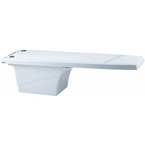 Plongeoir de couleur blanche en polyester armé et fibre de verre, recouvert de Gelcoat isoftalmique pour plus de résistance. Livré avec ancrages. Dimensions 1.20 x 0.40m – – – –
