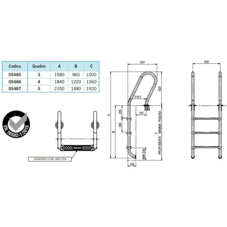 Modèle 3 marches escalier mixte AstralPool-Modèle luxe