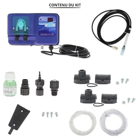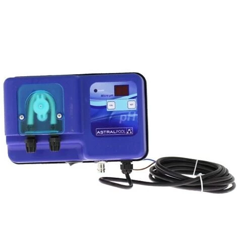 Le régulateur Micro pH est un régulateur électromagnétique fabriqué par Astralpool. Il permet de suivre individuellement le niveau du pH de l´eau de votre piscine, et de le réguler par injection de produit. Pourquoi utiliser un régulateur piscine Astralpool ? Un produit multi actions Le produit Micro est un modèle standard de régulateur de pH, qui utilise une pompe péristaltique pour le dosage des produits injectés. Vous pouvez suivre le niveau qu´il est chargé de réguler par un affichage sur écran à LED et ce, avec une précision de 0,01 pH. La gamme Micro de chez AstralPool est dotée de grandes qualités comme une sécurité en cas de dosage à vide ou de surdosage, une fonction de surveillance de l´usure des électrodes ou encore une fonction de réglage et d´affichage du point de consigne à atteindre. L’automatisation de sa piscine est un réel gain de temps pour le consommateur mais elle permet aussi d’être rassuré sur la bonne régulation de votre eau. Le contenu de votre colis : – Crépine d’aspiration- Tubes de refoulement et d’aspiration- Porte sonde- Kit de fixation murale- Sonde de pH- Clapet d’injection- Solutions d’étalonnage pH- Colliers de prise en charge x2 ø50- Pompe doseuse péristaltique Micro pH Les caractéristiques Type de pompe : PéristaltiquePour piscines : 100 m3 max.Protection boîtier : IP65Dimensions : 115 x 183 x 109 mmAlimentation : 230VRégulation : pH moins uniquementDébit max : 1.6 l/hPression max : 1 barPlage de mesure : 0 à 9.90 pHType d’étalonnage : Semi – automatique